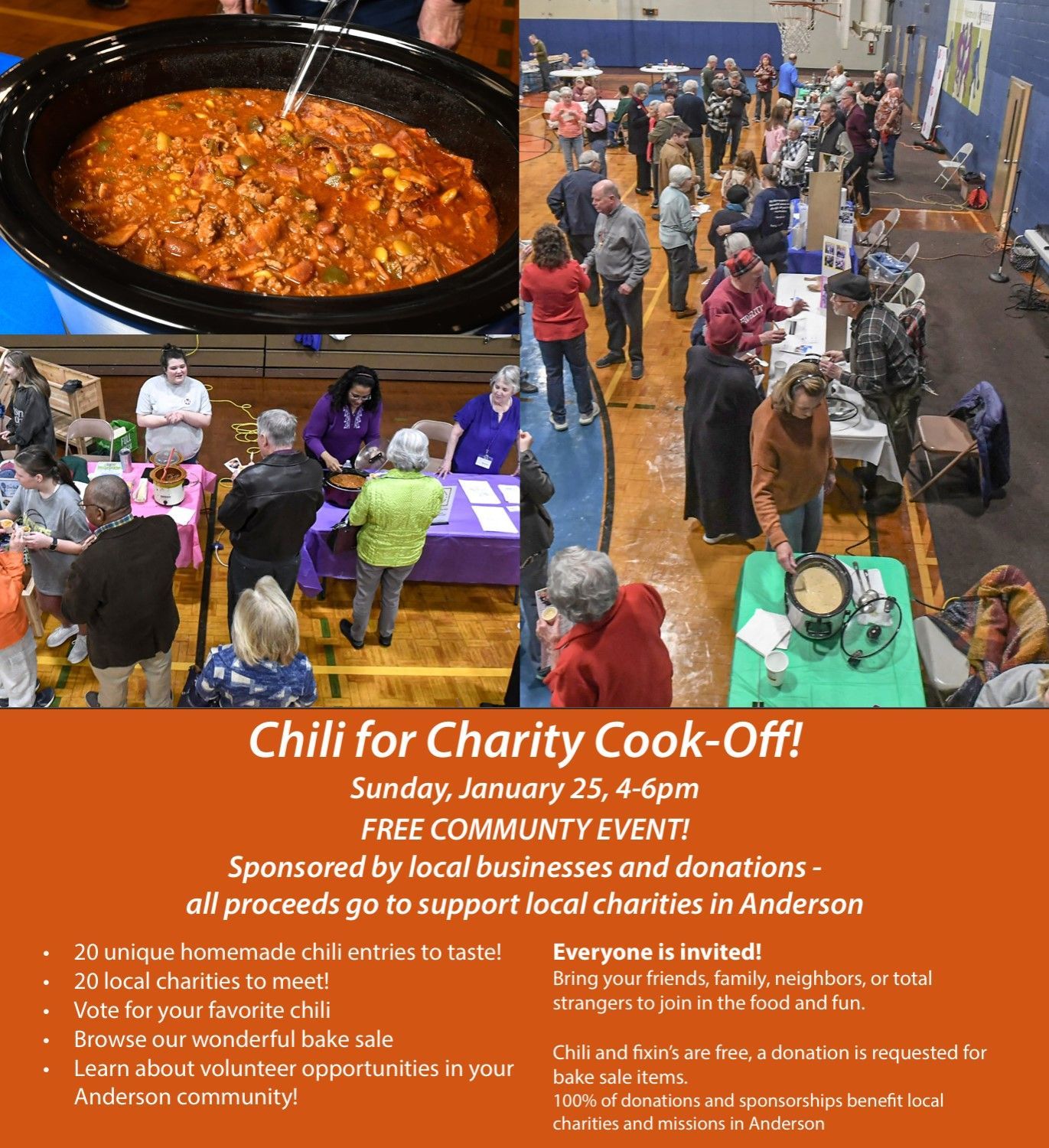 St John's UMC is excited to host our fourth Chili Cook-Off and Missions Fair, now renamed as the Chili for Charity Cook-Off! This year's event is free to the public thanks to our wonderful sponsors. Donations are accepted for bake sale items and additional votes in the chili contest!
